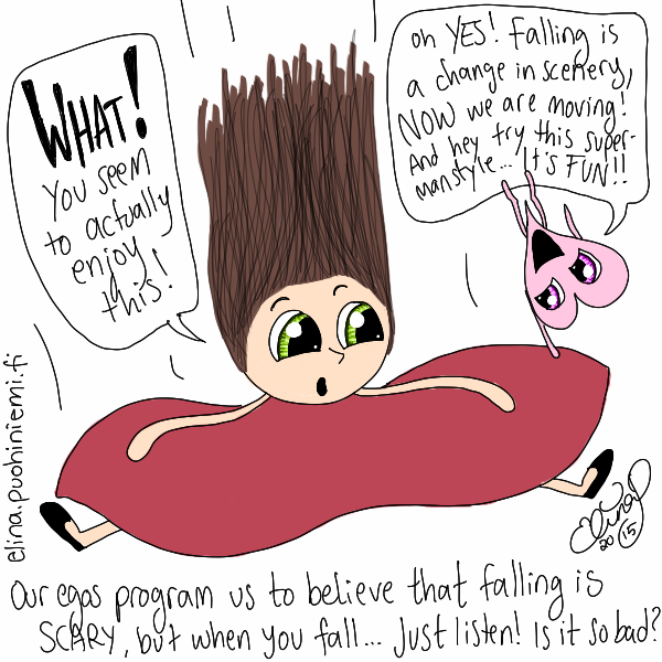 että putoaminen on pelottavaa,