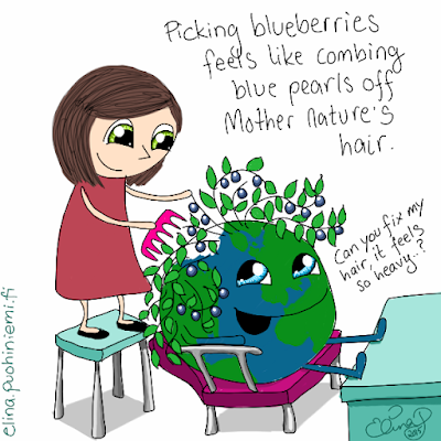 Fixing Her Hair By Picking Berries by elinap | Jul 21, 2015 | Yleinen “Mustikoiden poimiminen on kuin kampaisi sinisiä helmiä luontoäidin hiuksista. ‘Voisitko laittaa hiukseni, kun ne tuntuvat niin raskailta?’ “