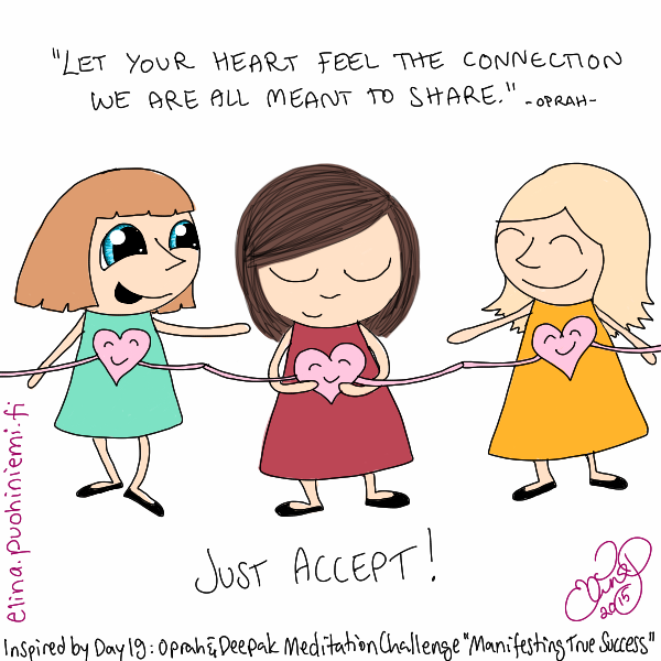 Let’s Leave Judgmenting Aside by elinap | Apr 7, 2015 | Yleinen “Anna sydämesi tuntea yhteys, joka on tarkoitettu meidän jaettavaksemme.” Deepak Chopra’s and Oprah’s 21 Day Meditation Challenge