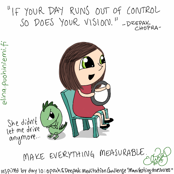 Take That Steering Wheel – Now by elinap | Mar 29, 2015 | Yleinen ” ‘Jos päiväsi on kontrolloimaton, niin on visiosikin.’ Tee kaikesta mitattavaa.” Deepak Chopra’s and Oprah’s 21 Day Meditation Challenge