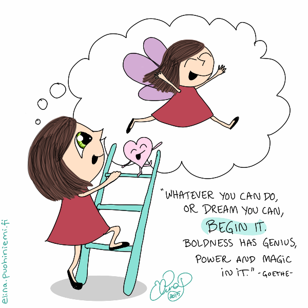 Take The First Step by elinap | Oct 16, 2015 | Yleinen “Mitä tahansa voit tehdä, tai unelmoida, että voit, aloita se. Rohkeudessa on neroutta, voimaa ja taikaa.” – Goethe –