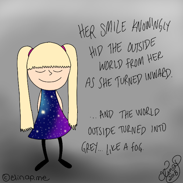 Elina lives in Finland, goes to nature walks daily in the nearby forest (Well, Finland is mostly forest, so they are near everywhere) enjoys her slow and minimalistic lifestyle as a mom of two boys and a wife of one awesome husband. But even though her life is simple outside, the world inside her head and heart are filled with imagination and thoughts, thoughts, thoughts and that’s mostly not simple at all. So she draws to gain clarity.